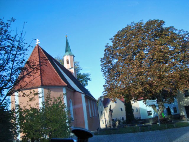 a chapel in Velburg, Germany. You can see the colorful tree on its side as a sign of Fall season.