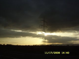 This is not the breaking of dawn. This is a photo I took as I came back from England to Germany. This is the time as we were driving back home from the Airport in Hahn, Frankfurt. The weather was so bad that time. Happy Wordless Wednesday..sorry I am not wordless today!